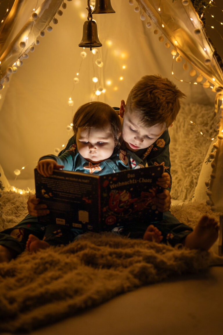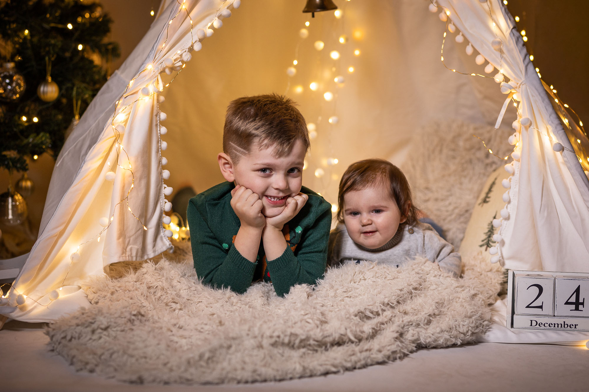 Unser warmes, liebevoll dekoriertes Weihnachtszelt bietet die perfekte Kulisse für natürliche und emotionale Kinderbilder.